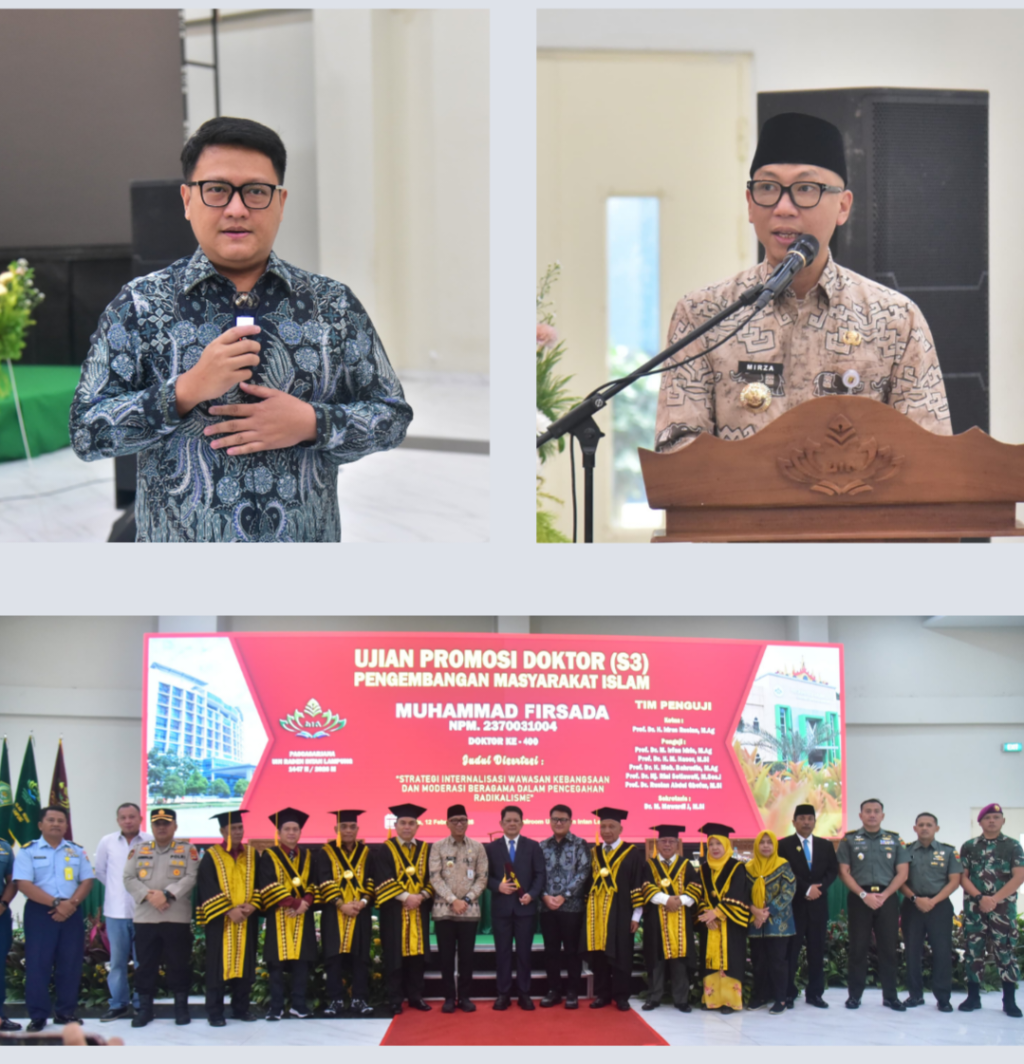 Disertasinya sangat relevan karena membahas moderasi beragama dan pencegahan radikalisasi serta terorisme. Mudah-mudahan kajian ini dapat menjadi referensi yang mendorong upaya bersama dalam menekan penyebaran radikalisme dan terorisme di Provinsi Lampung,” ujar Giri Akbar.
